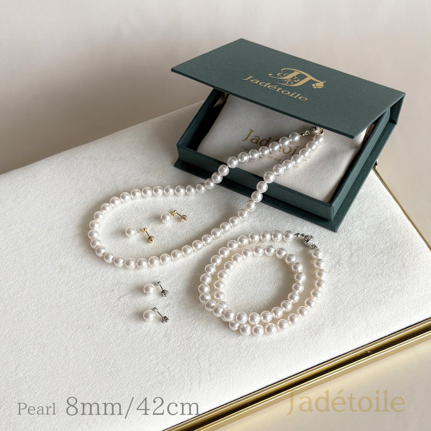 Perle マグネット式 ⌘ 8mm パールネックレス 42cm &ピアスセット