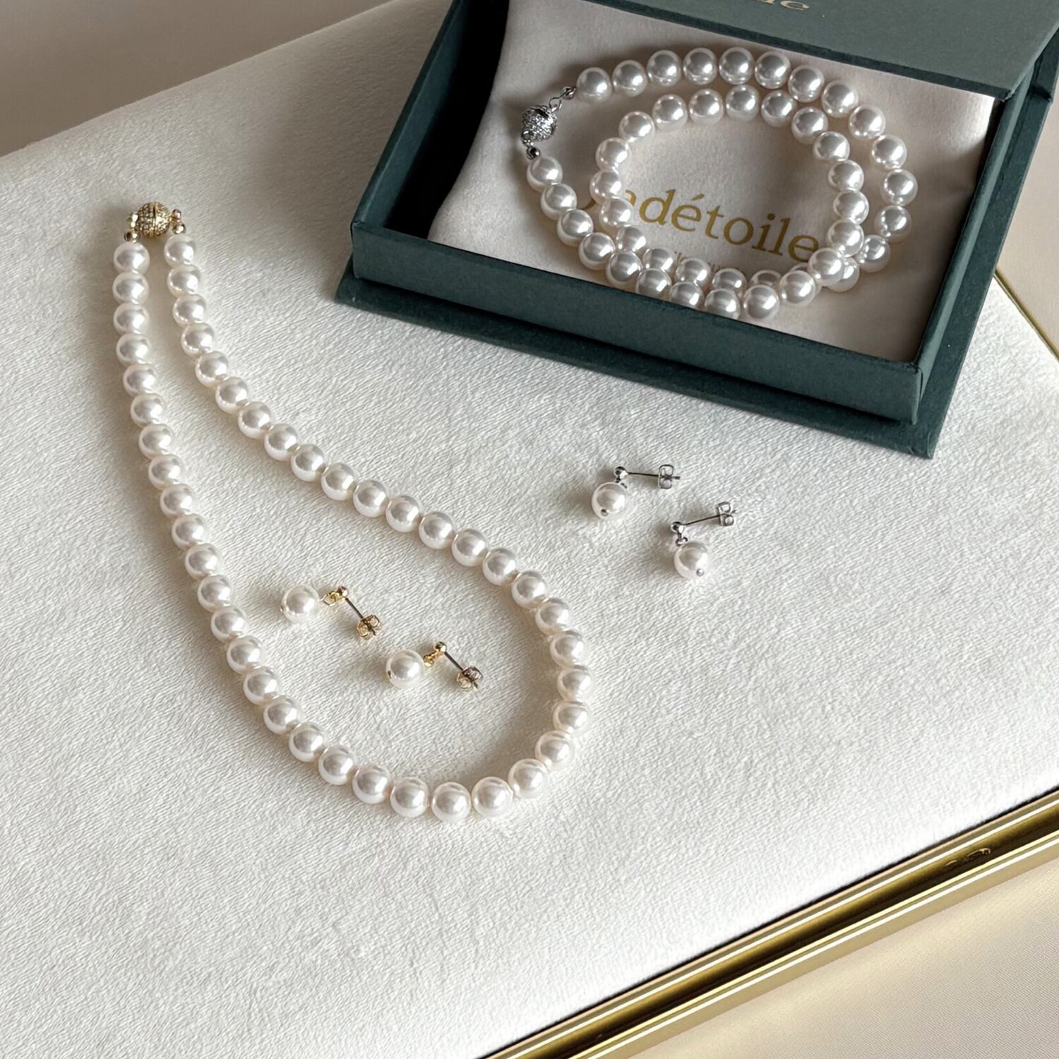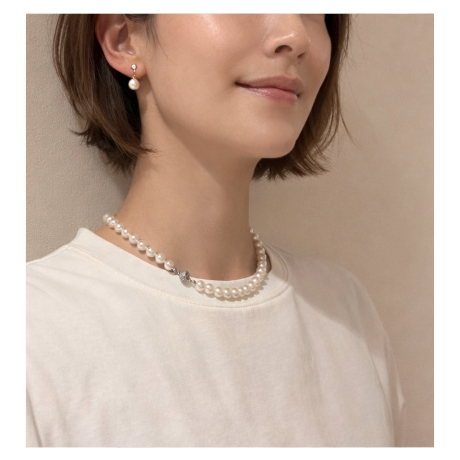 Perle マグネット式 ⌘ 8mmパールネックレス 38cm &ピアスセット