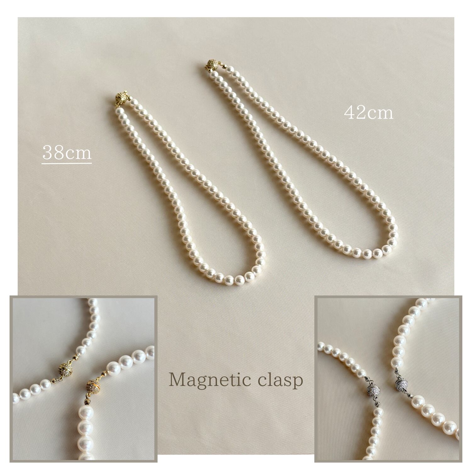 Perle マグネット式 ⌘ 6mmパールネックレス 38cm & イヤリングセット