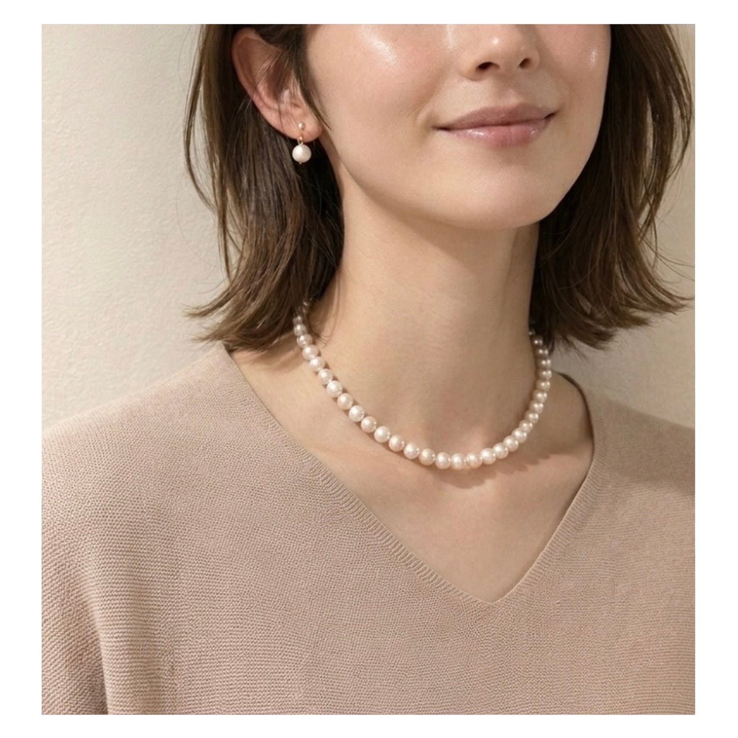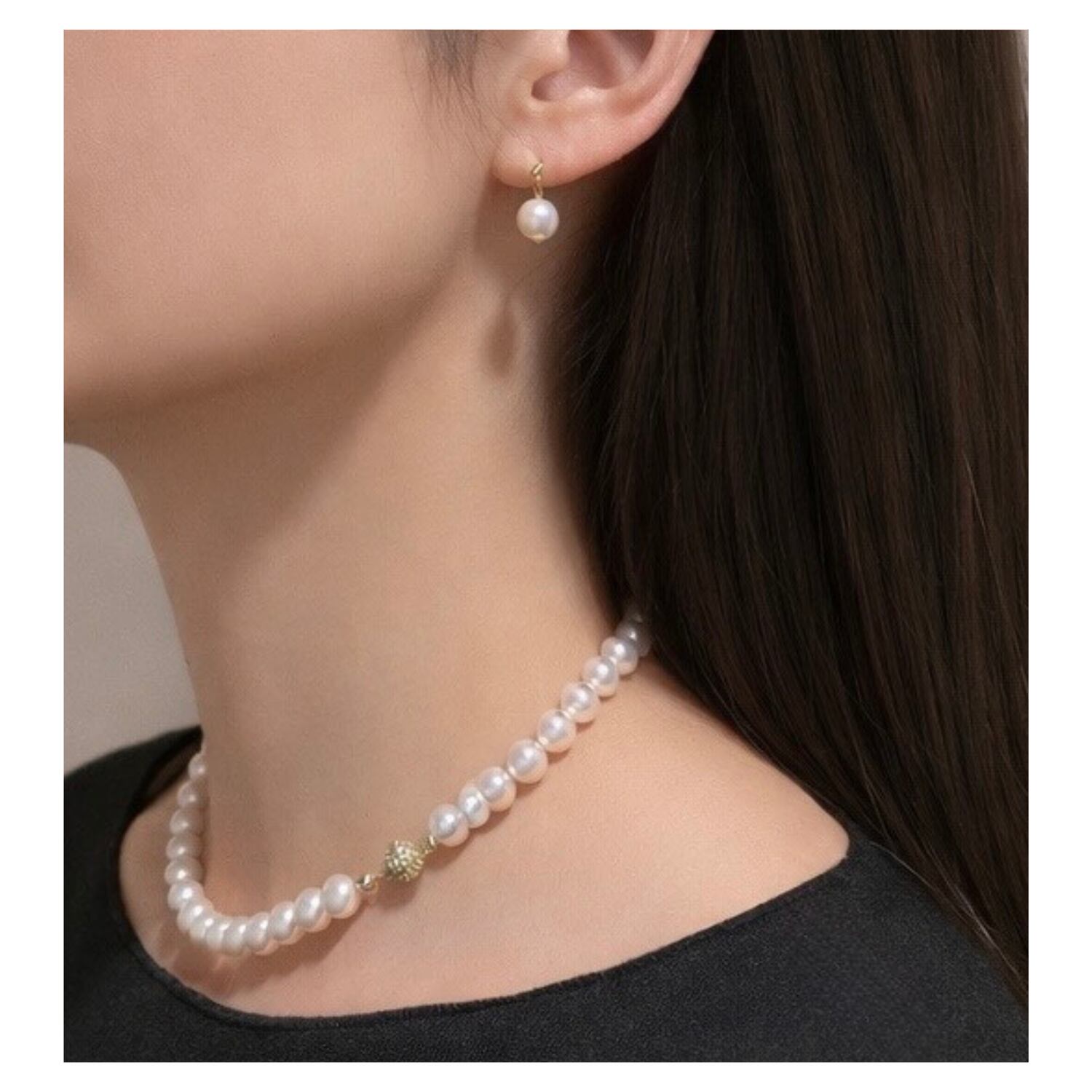 【 8mm/ パールネックレス & イヤリング 】
