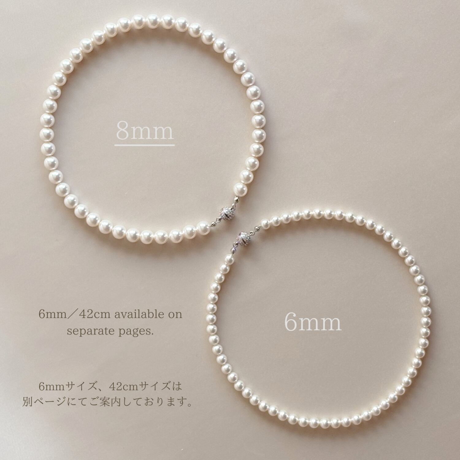 ◆ 同シリーズの6mm、8mmパールまたは天然石ネックレスを2本マグネット留め具で繋ぐことができます。76cm〜84cmのロングネックレスとしてお使いいただけます ◆