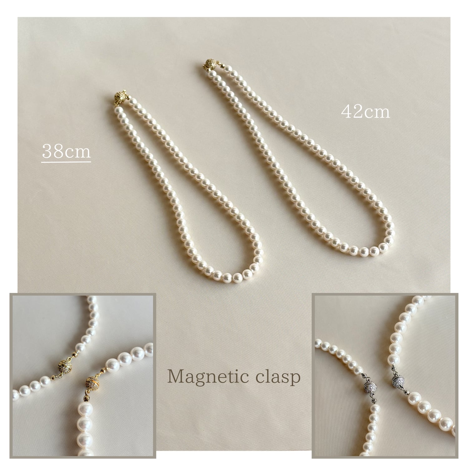 Perle マグネット式 ⌘ 8mmパールネックレス 38cm &イヤリングセット