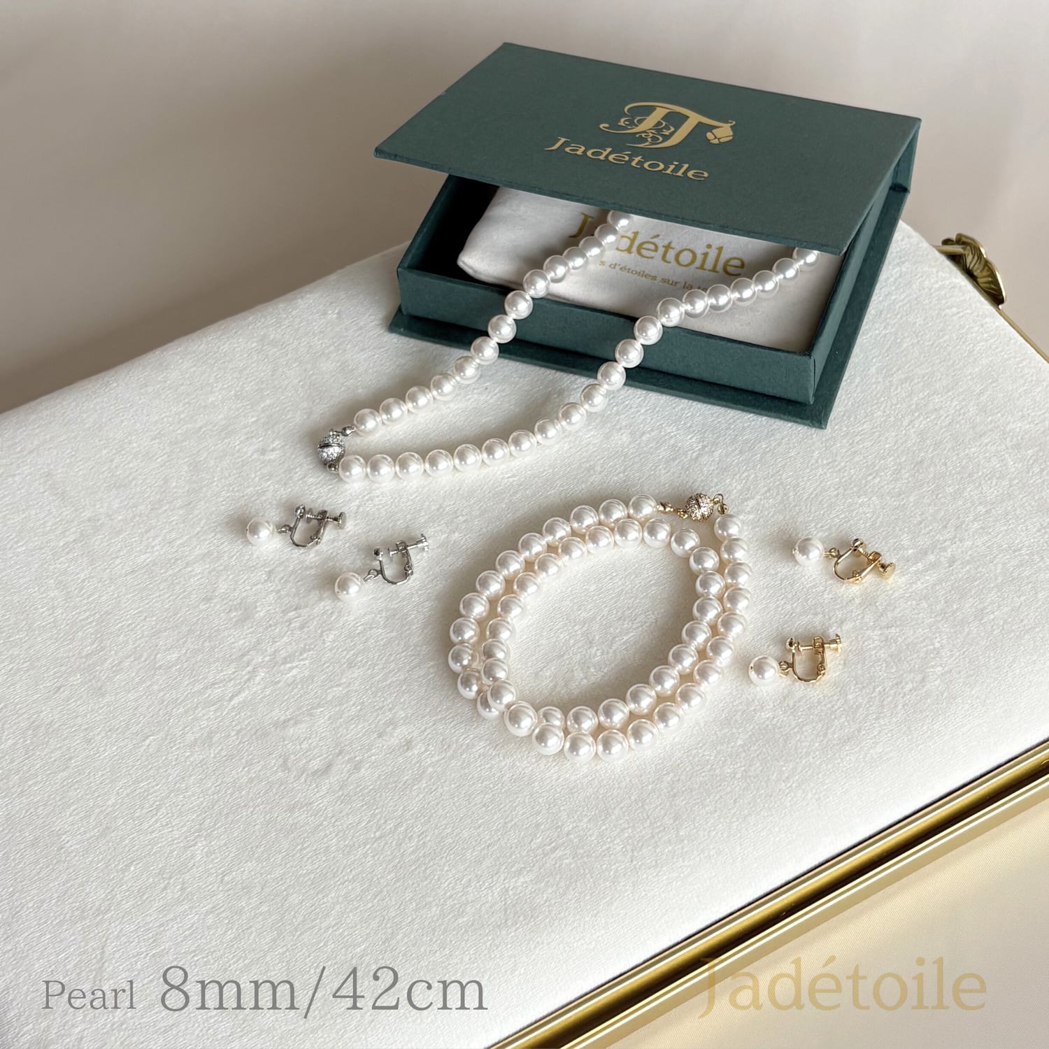 Perle マグネット式 ⌘ 8mmパールネックレス 42cm &イヤリングセット