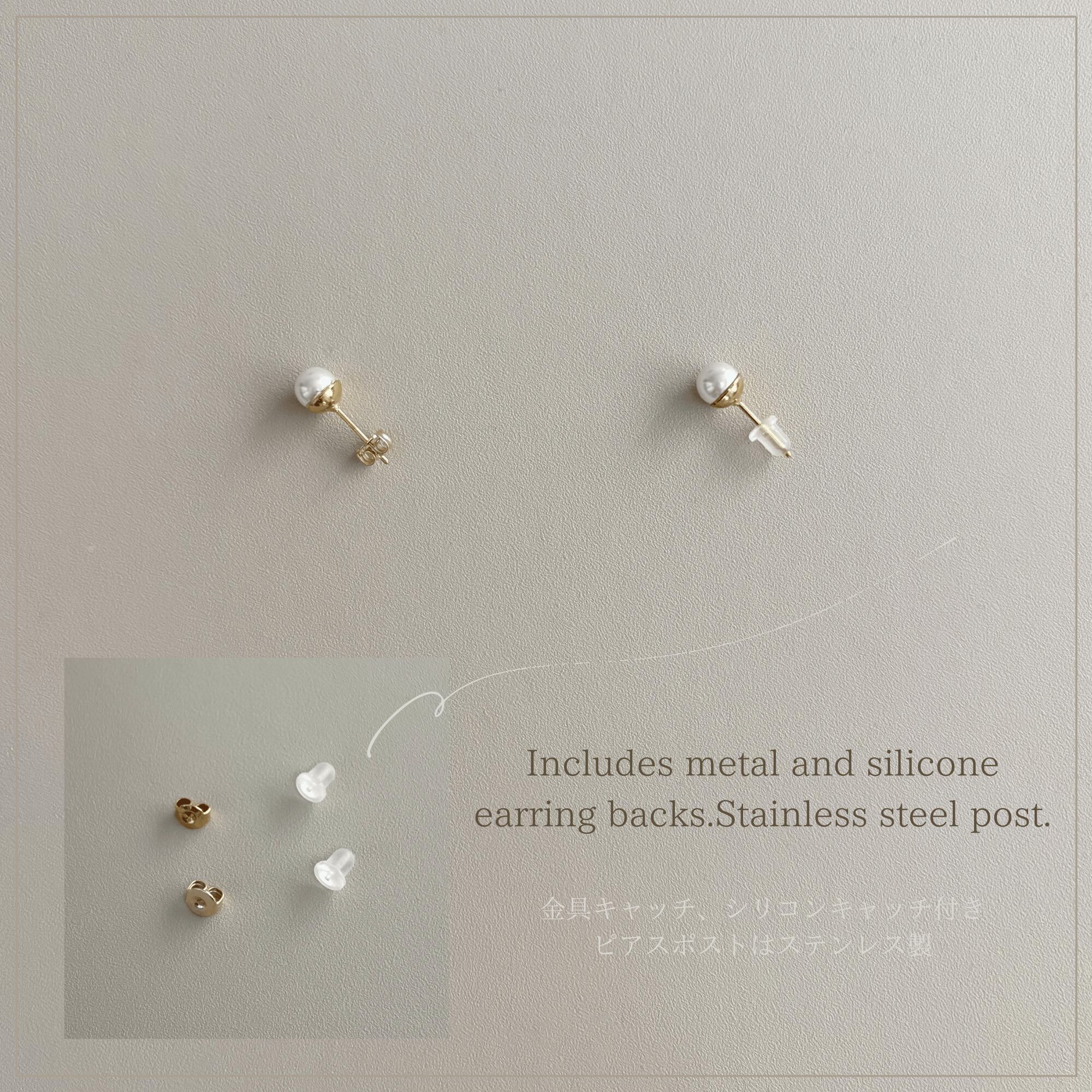 Perle ホワイト⌘パールスタッドイヤリング/ スタッドピアス(6mm)