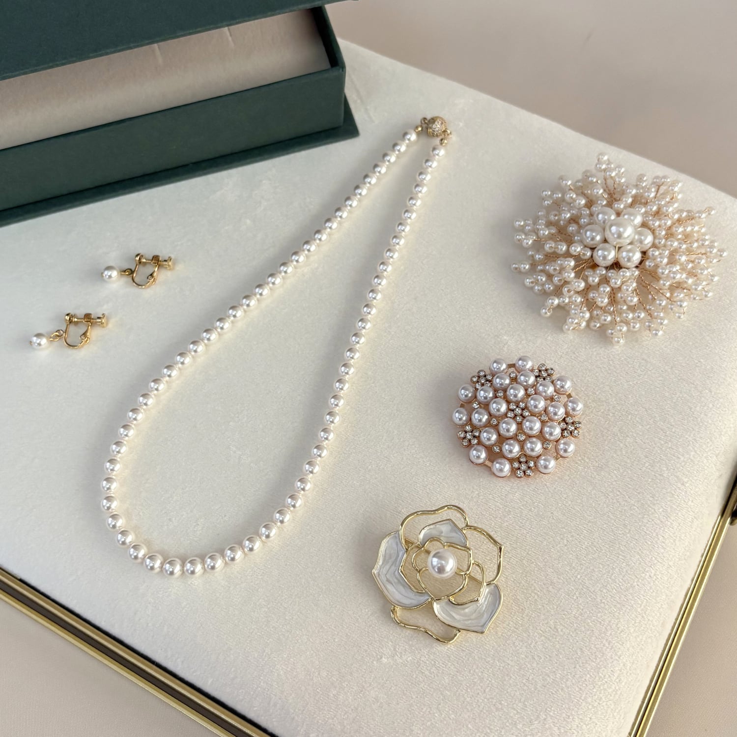 Perle フォーマル3点イヤリングセット ⌘ 6mm パールネックレス 42cm / 選べるブローチ