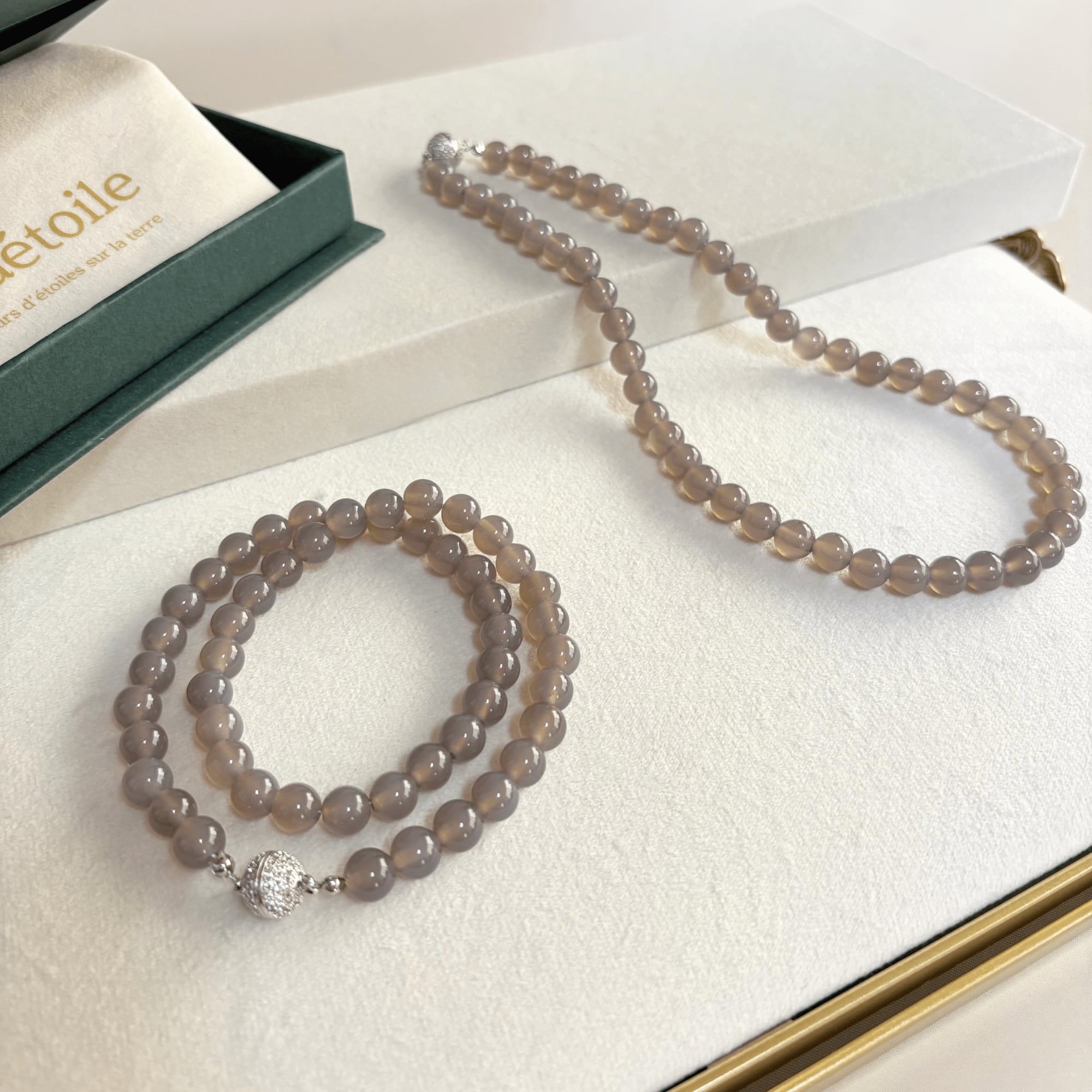 Simone マグネット式 ⌘ 8mmグレーオニキス ネックレス 42cm
