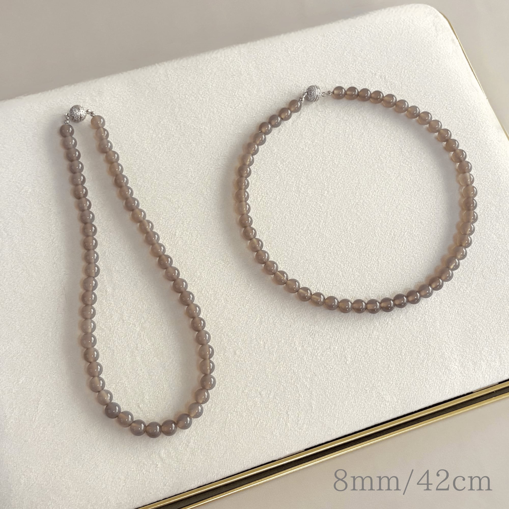 【 8mm/天然石 グレーオニキス ネックレス 】