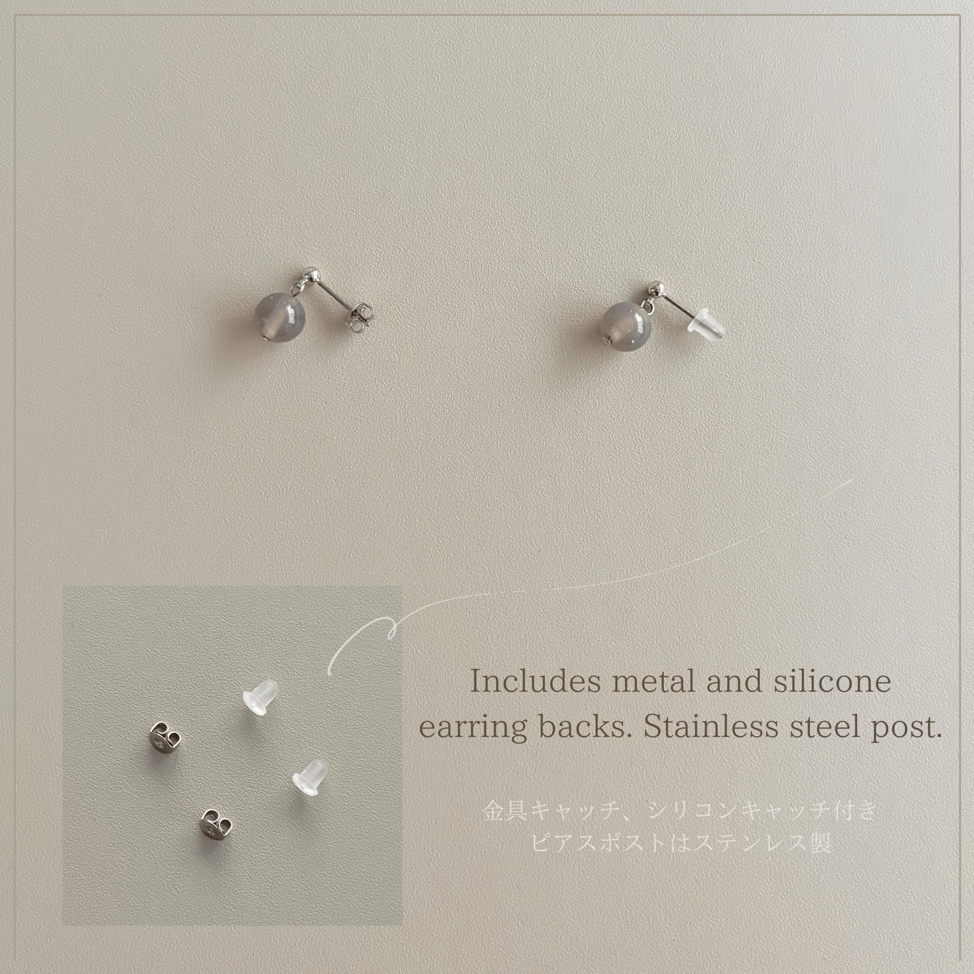 Simone. 天然石 グレーオニキス⌘ ドロップイヤリング/ドロップピアス(8mm)