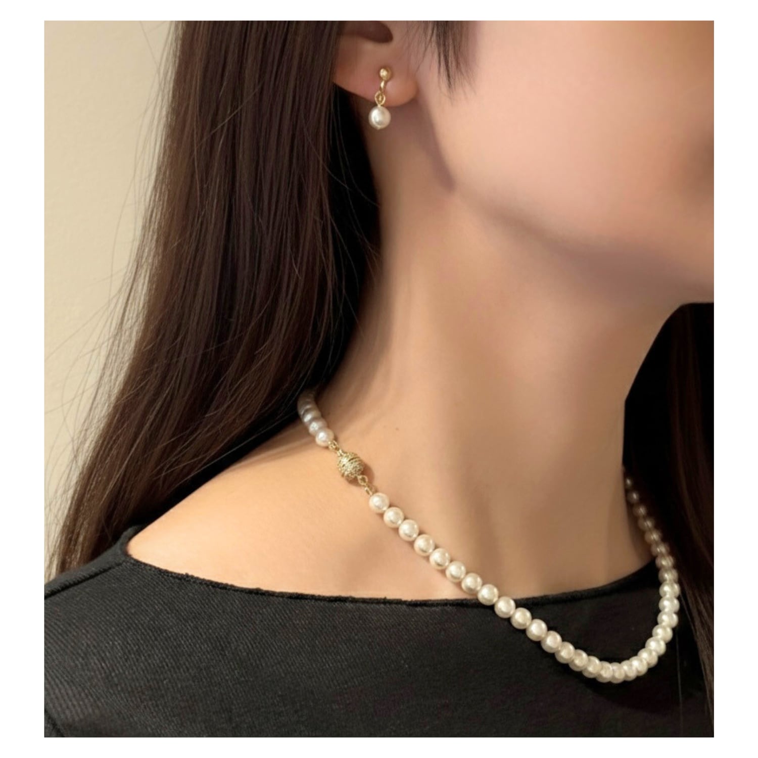 Perle マグネット式 ⌘ 6mmパールネックレス 42cm