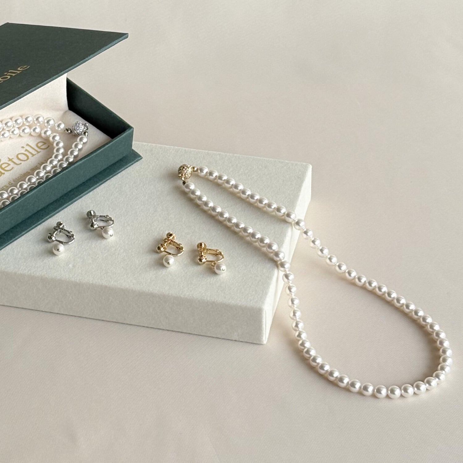 Perle マグネット式 ⌘ 6mmパールネックレス 42cm &イヤリングセット