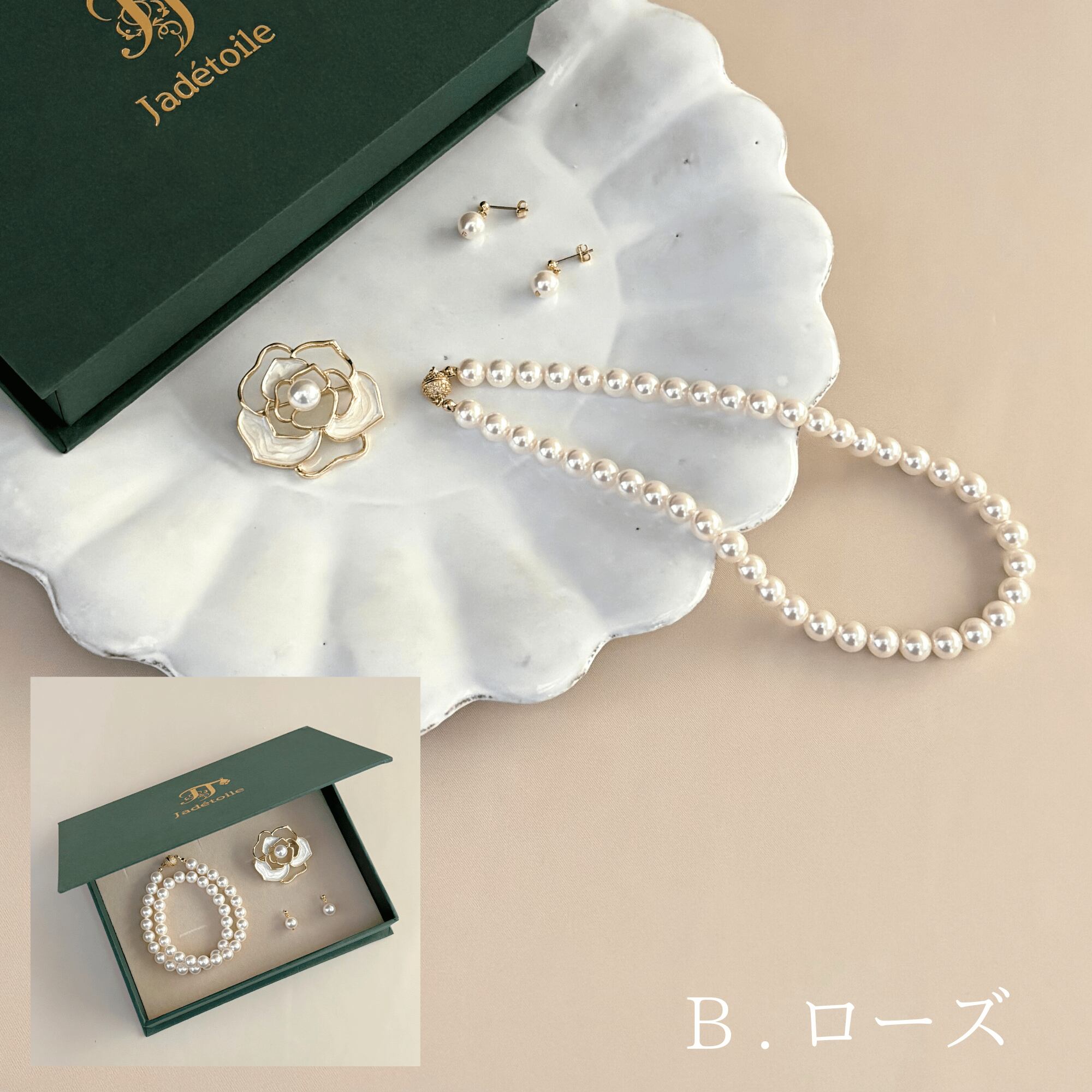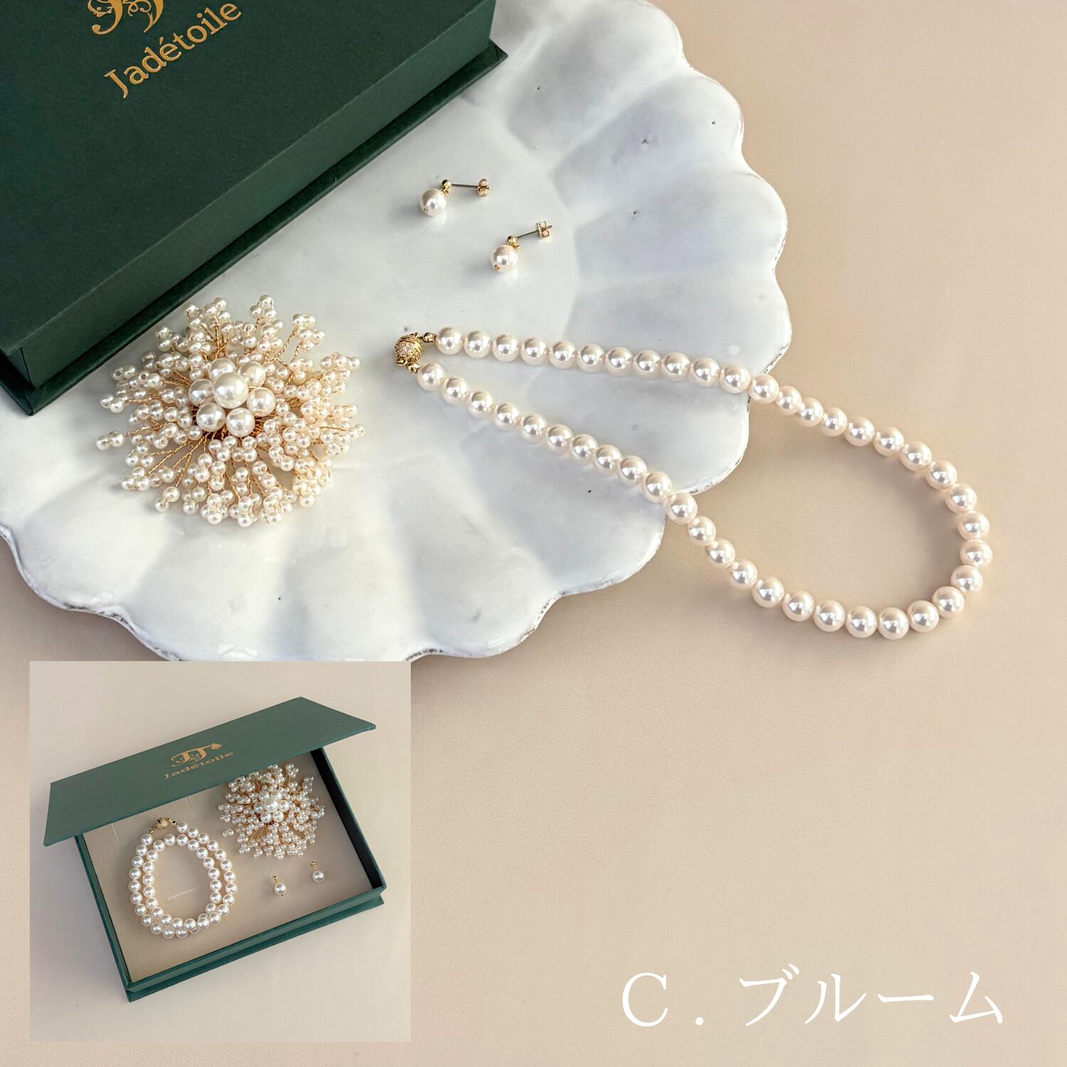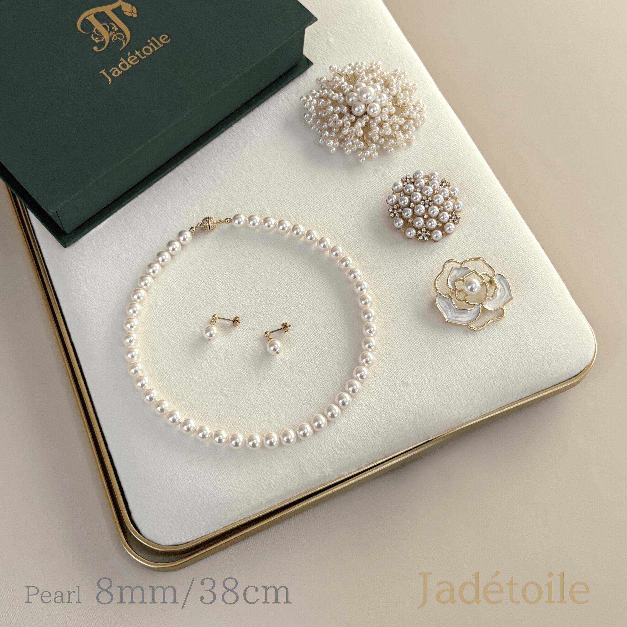 Perle フォーマル3点ピアスセット ⌘ 8mm パールネックレス 38cm /選べるブローチ